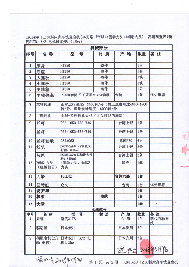 所訂機(jī)型: 購(gòu) 凱恩利 46車銑機(jī)(機(jī)型:CKX46D-Y 數(shù)控車床—46刀塔機(jī)+帶Y軸+端銑4頭+Y軸側(cè)銑4頭+10工位刀塔)—高配配置)